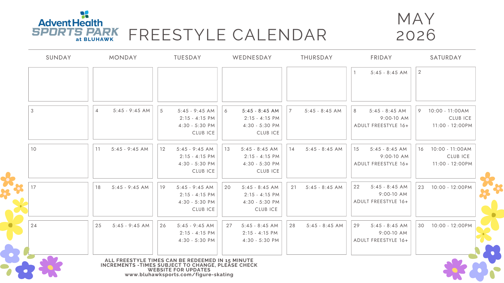 Skaters will be able to use their punch card in 15 minute increments for Freestyle sessions each week.