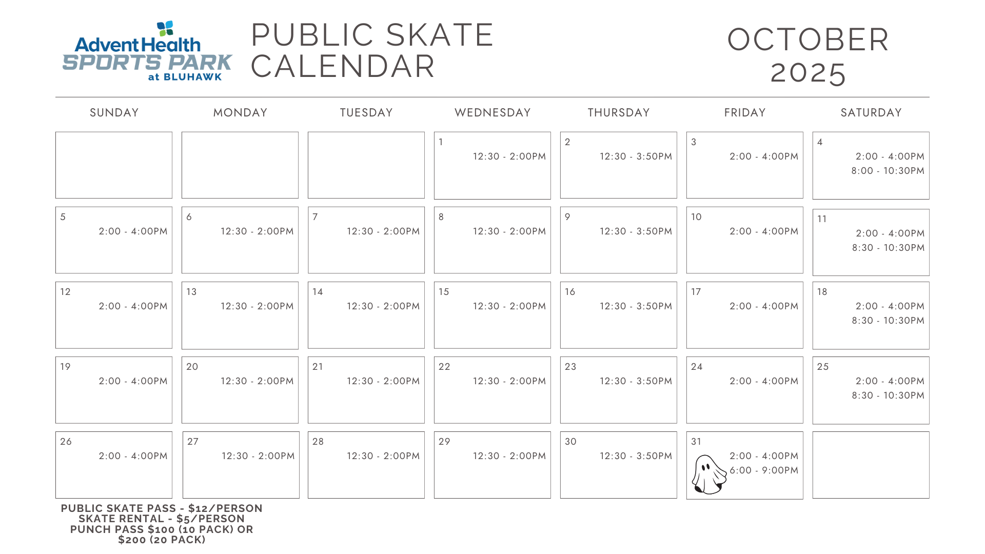 20 Punch Pass – $200 (no skate rental included)